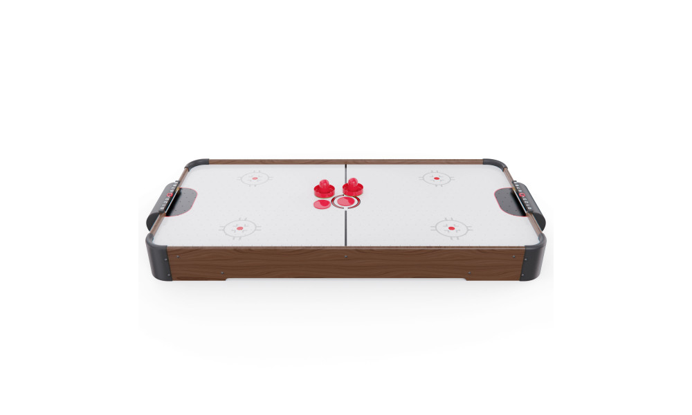 Игровой стол оснащён вентилятором на 220V, создающим воздушную подушку под шайбой. Это обеспечивает лёгкое и быстрое скольжение по полю, делая игру более захватывающей и реалистичной.