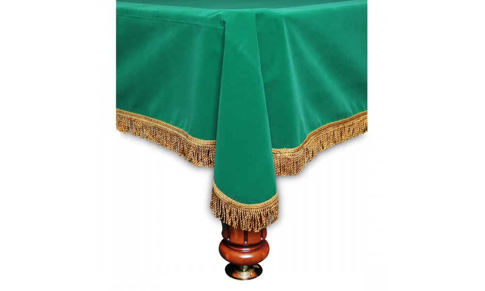 "Чикаго" изготавливается из вельвета — плотной ворсовой ткани. Зеленого цвета, матовое, покрывало украшено бахромой золотистого или зеленого цвета. Выглядит строго и стильно, способно украсить любой интерьер. Ткань плотная, не мнется, хорошо защищает стол и сукно от пыли, солнца, влаги, грязи и повреждений.